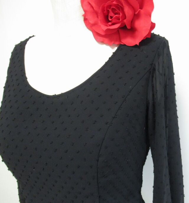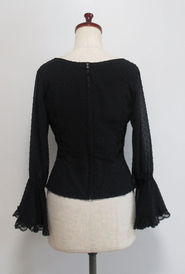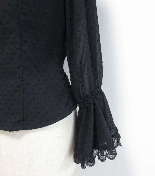 つぶつぶの水玉生地と袖のレースで黒無地でも寂しくありません