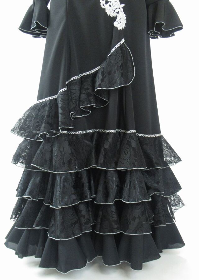 持って踊りやすいセミタイトライン。フリルにはレースやジャガード生地など軽い生地を使用しています。