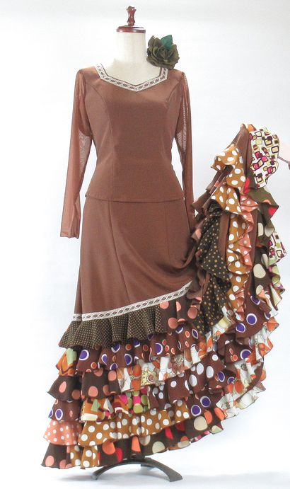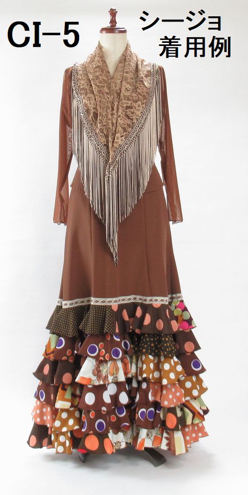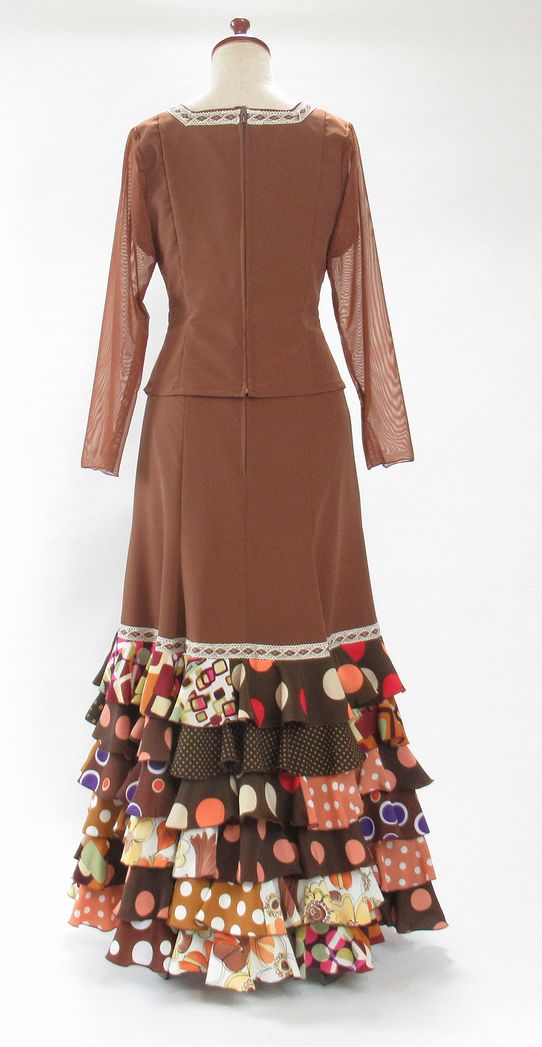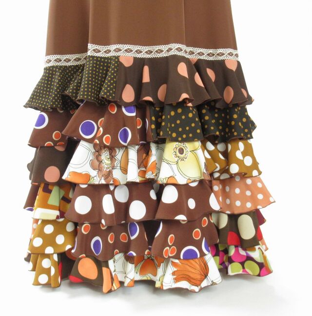 裾6段フリル(茶・オレンジ系のパッチワークフリル)