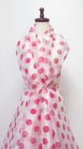 ★オーガンジー 白地に濃いピンクの水玉(直径3.5cm)