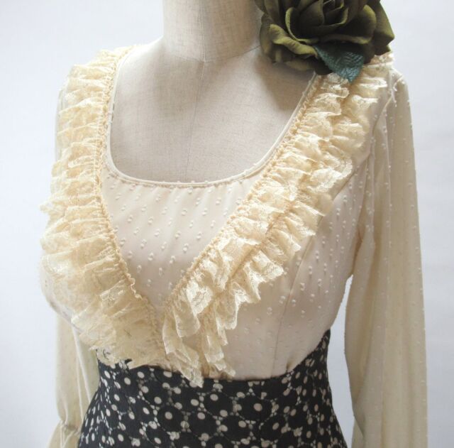 ほど良い透け感のジョーゼット生地のブラウスにレース素材の水玉生地。