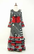 生地:黒×白変わり水玉(スペイン生地)、コードラッセルレース赤、黒無地、黒×白花柄
