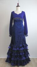 明るい紺色~濃紺を使用した、ハイウエスト切替のワンピースです。