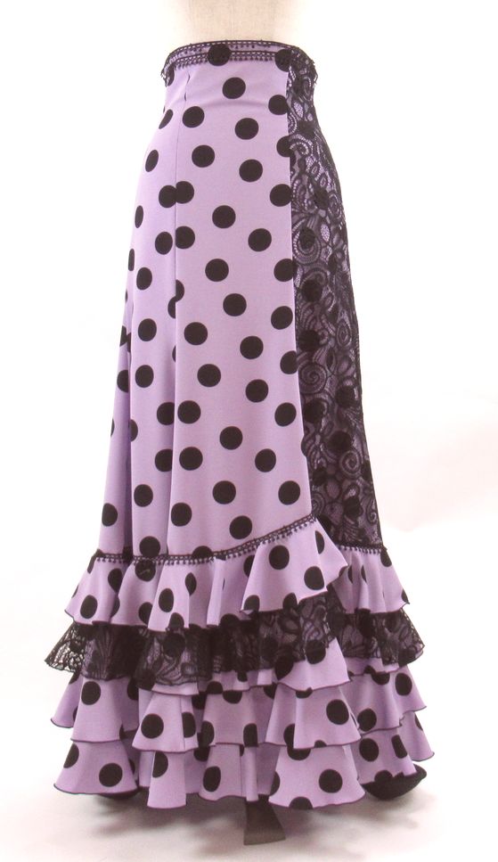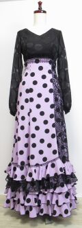 シフォン黒水玉ブラウスとシックな薄紫に黒水玉の組み合わせ。