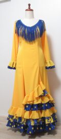 使用生地:コチーボ山吹色、ストレッチシフォン黄色×青花柄、サテン青×黄色水玉