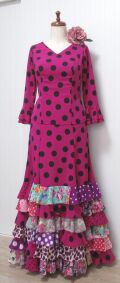 赤紫に黒水玉を本体にして、フリルはピンク~紫系のパッチワークにしました。